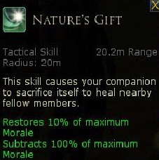 The Nature's Gift skill causes your pet to sacrifice. The sacrifice returns only 10% of the pet max morale, which is also too low.
